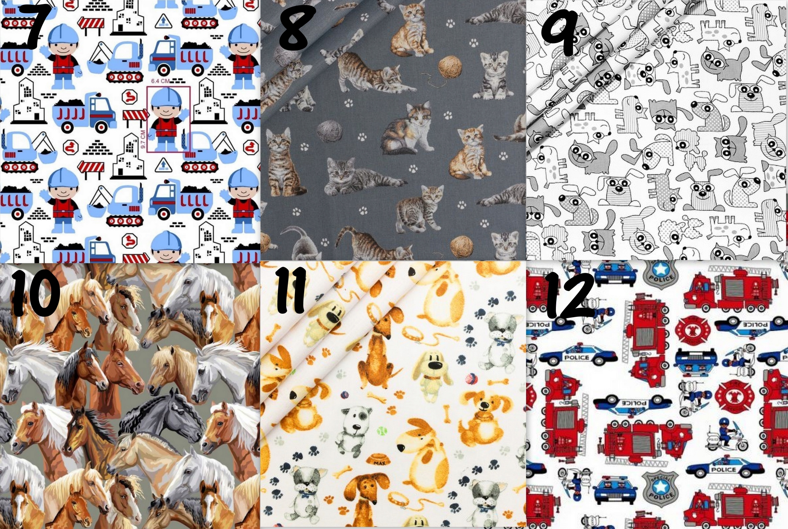 После покупки предоставьте выбранные ткани и детские имя. Цвет именной вышивки подбираю так, чтобы он совпадал со всем и был виден. Вы также можете предложить свой вариант :)