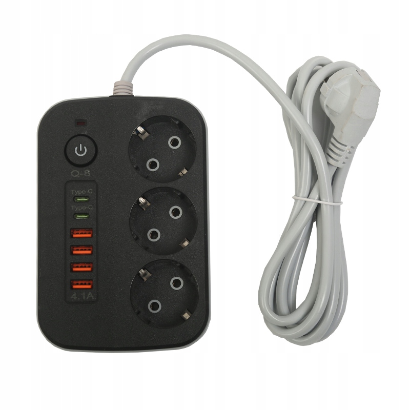 Удлинитель — удлинитель и мощное зарядное устройство в одном. Удлинитель имеет 6 портов и 3 розетки, что позволяет одновременно подключать до 9 различных устройств. Кроме того, полоска имеет практичный выключатель питания и светодиодную индикацию работы.