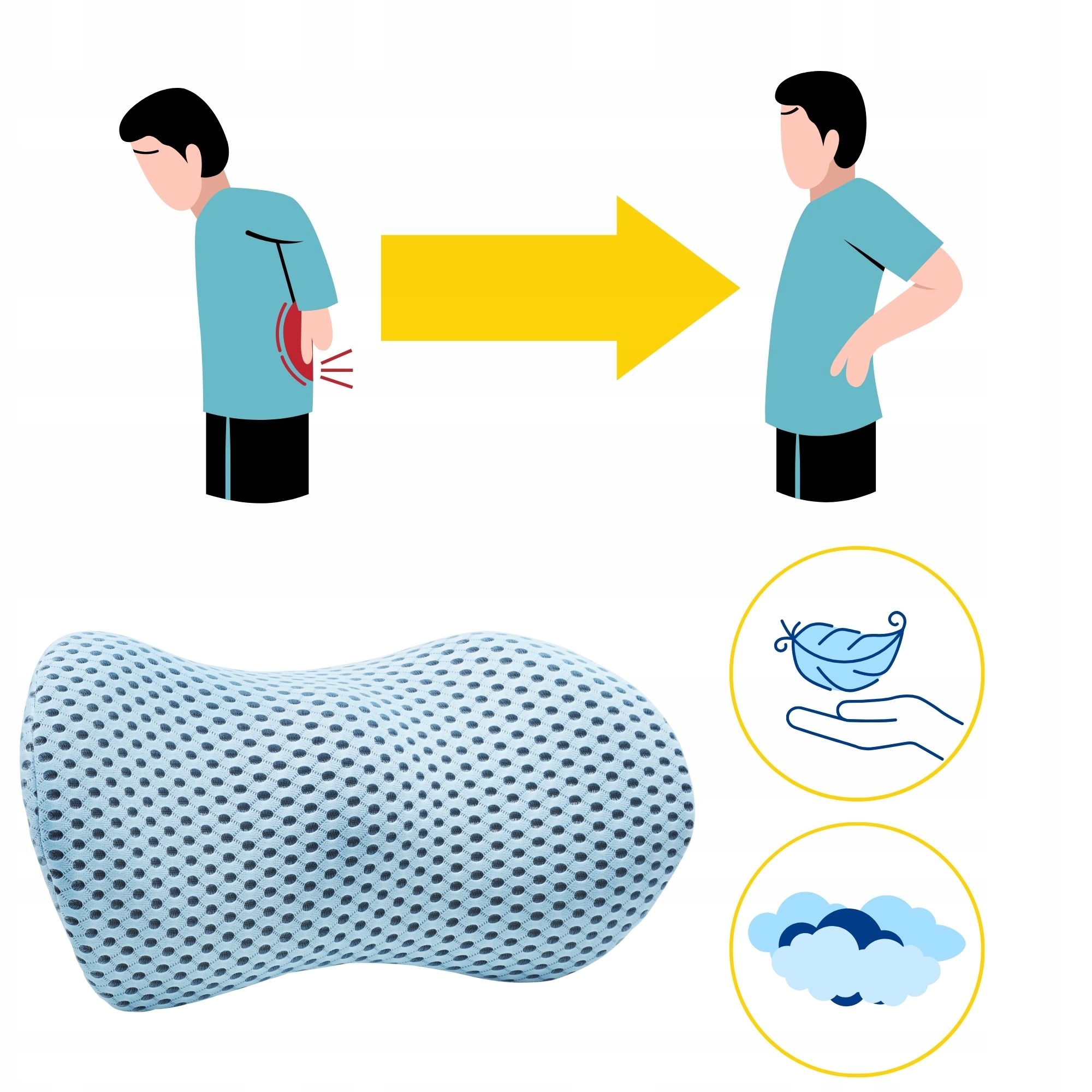 Сидячий образ жизни может привести к усилению болей в поясничном отделе позвоночника. Помимо ежедневных упражнений, стоит обеспечить комфорт во время работы. Поясничная подушка — отличный способ минимизировать проблемы со спиной. Его эргономичная форма и подстройка под изгибы спины снижают нагрузку на опорно-двигательный аппарат. Ортопедическая подушка — медицинское изделие, которое рекомендуется использовать на сиденьях неэргономичной формы.