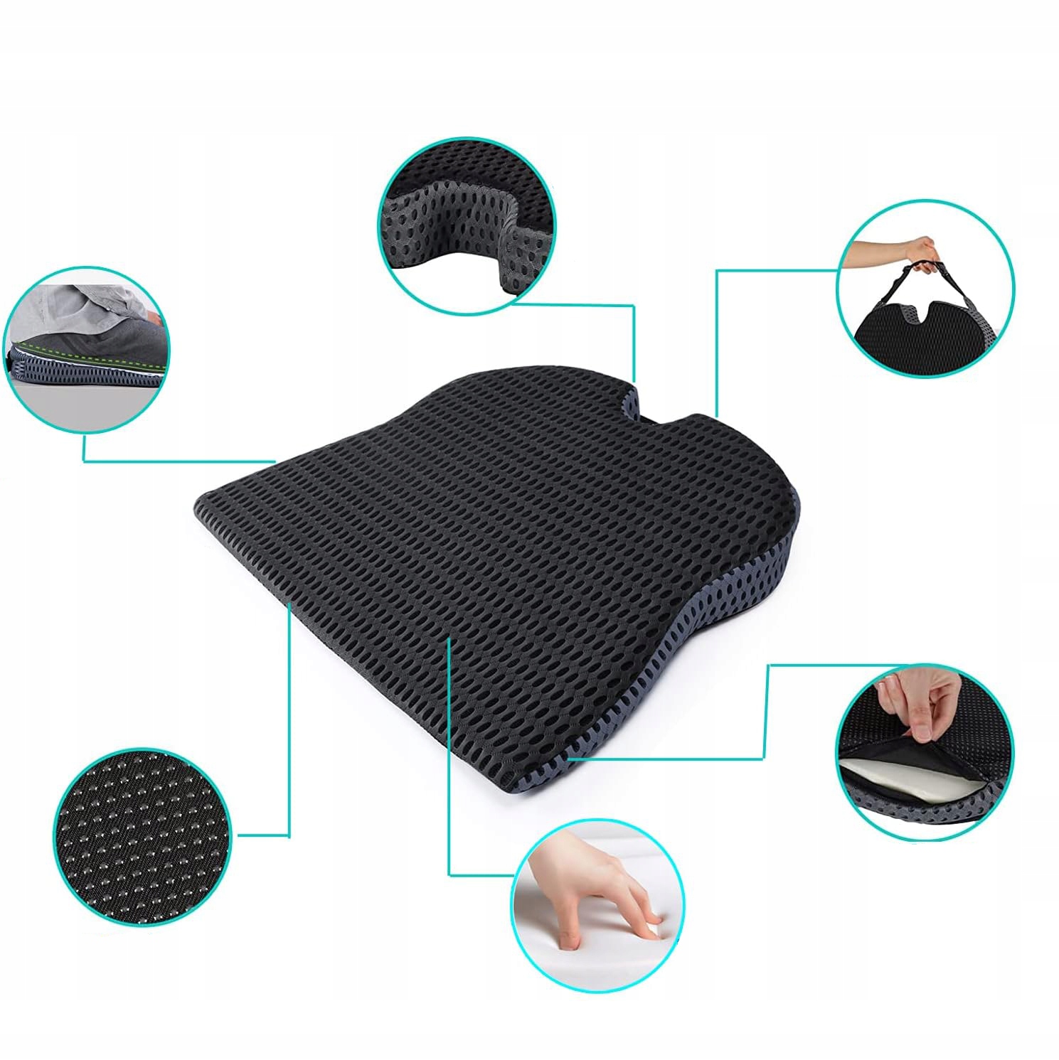-Приготовление 100% от высококачественной формы с памятью формы, оно характеризуется устойчивой мягкостью и эргономической вырезами для мыса, которое направлено на уменьшение давления до нижней части позвоночника и уменьшению боли каудальной кости.