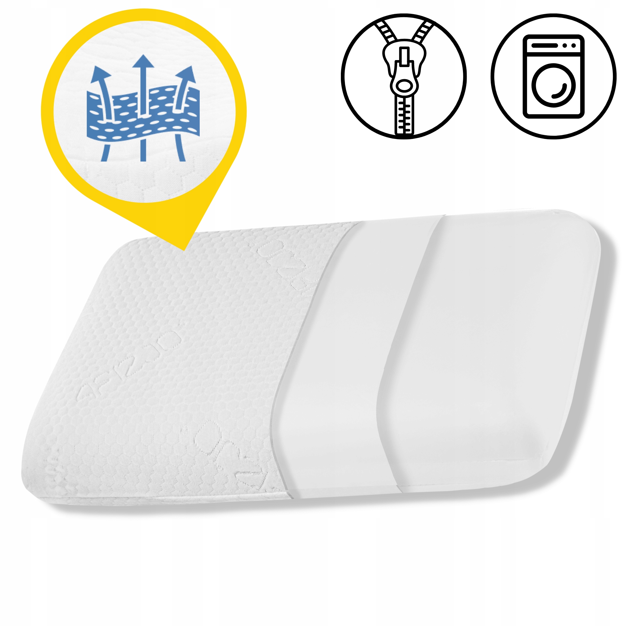 2️⃣ Несъемный внутренний чехол подушки - обеспечивает безопасность, герметичность и защиту от загрязнения. Особенно это важно для людей, страдающих аллергией и повышенной чувствительностью.
