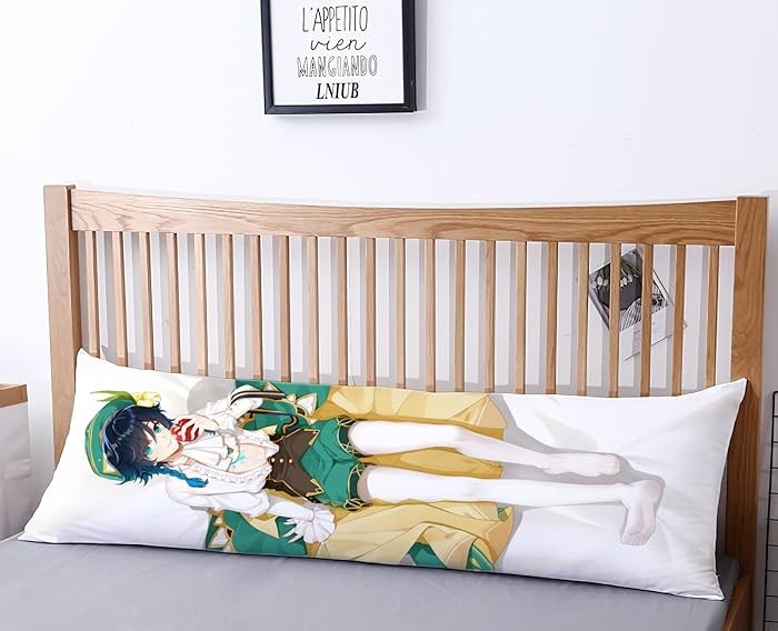 - Подушка размером 150 х 50 см с наволочкой с узором Венти от Genshin Impact,