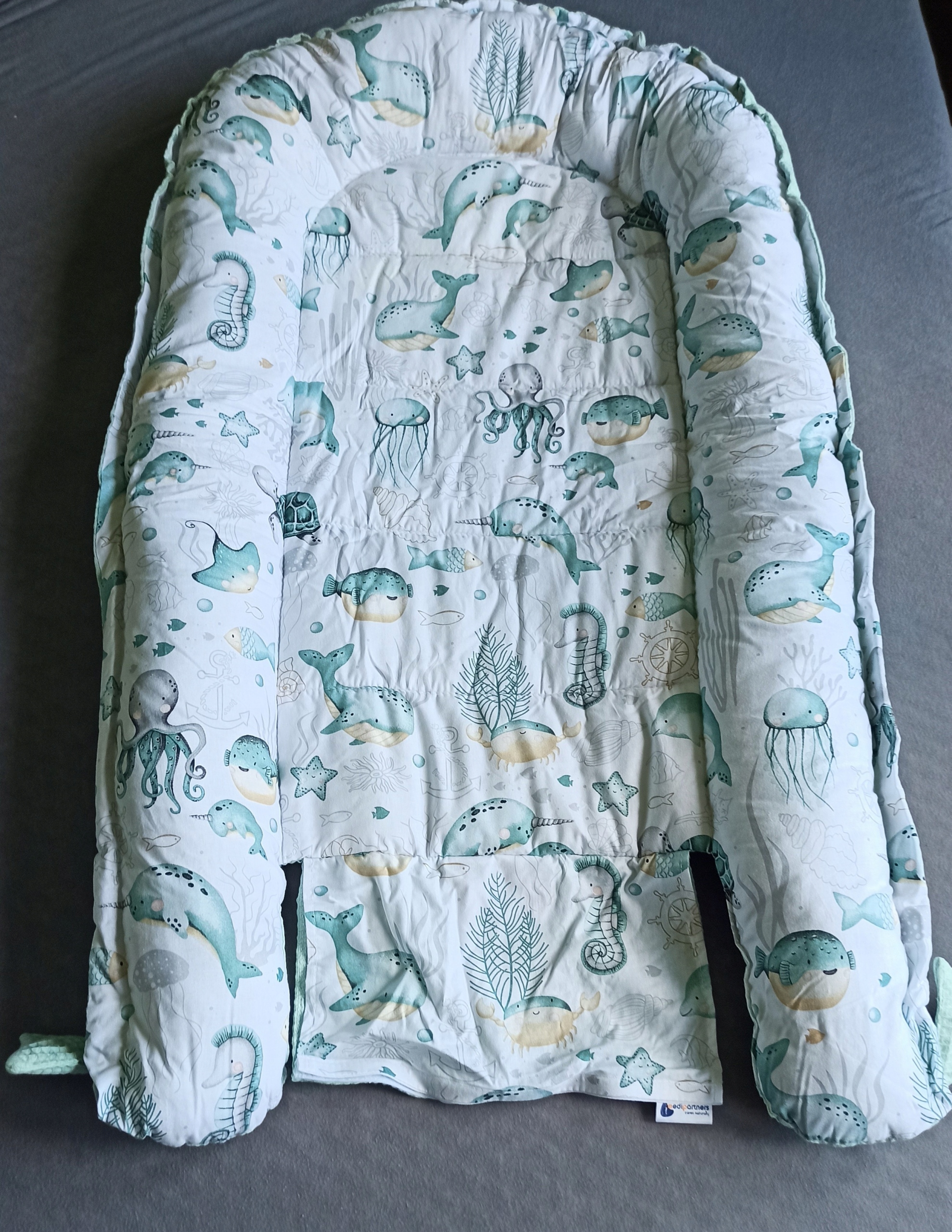 Двойная детская кокон 100% хлопковая вафля 100x60x15 см (океан)
