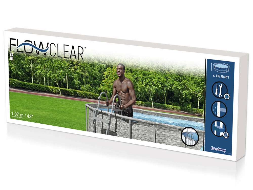 - Лестница для Bestway Pools, состоящей из четырех не -скользящих шагов, сделанных из пластика. Восхождение и оставление танка