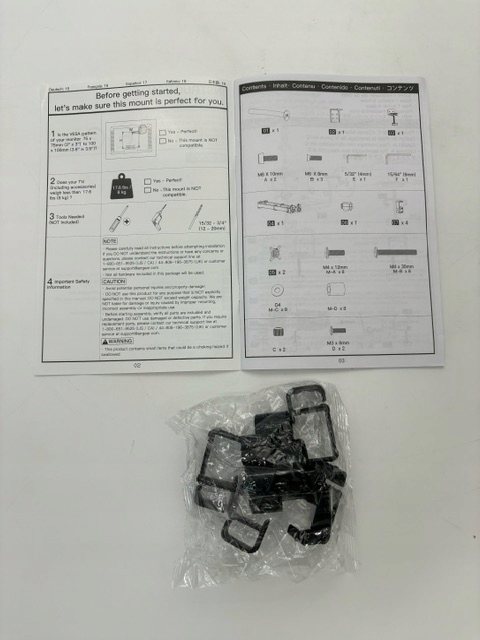 - Эта стойка для двух мониторов содержит зажимы для управления кабелями, которые прикреплены к Шормозренные руки и средний пост для маршрутизации. с ключом Аллена для сборки
