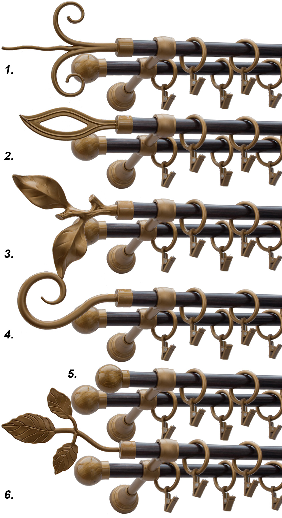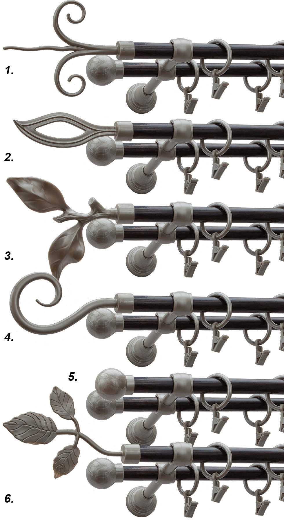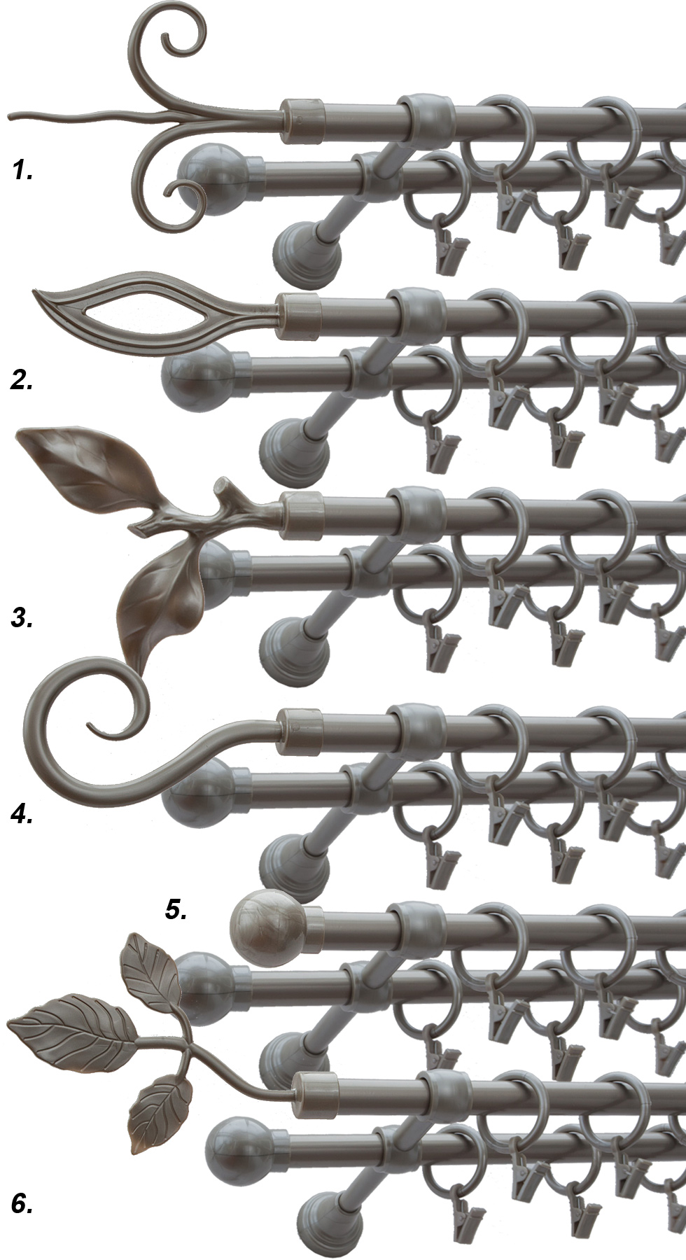 Под цветами шторных стержней и окончания моделей на выбор h1>