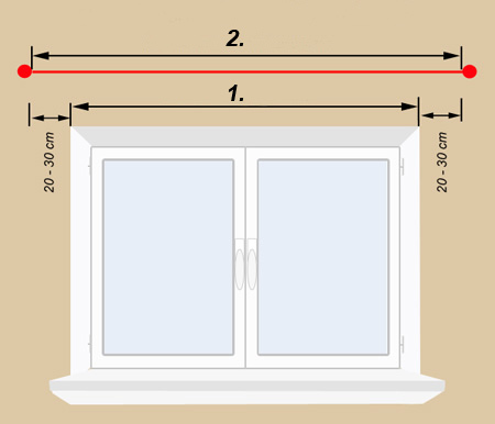 Чтобы правильно соответствовать стержне с занавесом, он должен быть длиннее оконного перерыва примерно на 40 - 60 см.