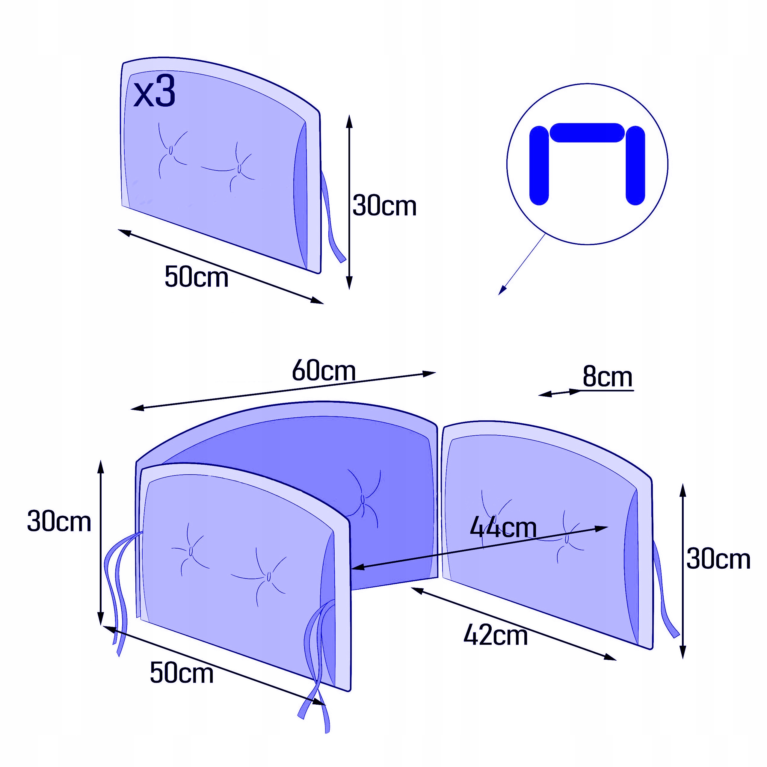 - ✅ Модульный : набор состоит из 3 отдельных подушек, что позволяет любые расположение и адаптацию к форме и размеру слоя. Благодаря этому решению вы можете гибко защитить выбранные части кроватки, что увеличивает функциональность и обеспечивает лучшую защиту в местах, где она наиболее необходима.