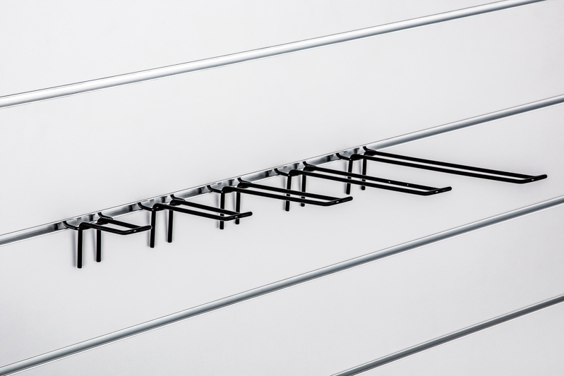 Двойной крючок, полностью изготовлен из проволоки с порошковым покрытием черного цвета. Крючок для панели Spacewall из проволоки. Подходит для товаров, упакованных с помощью евровешалки. Товары, подвешенные на двойной крючок, не опрокидываются – висят ровно.