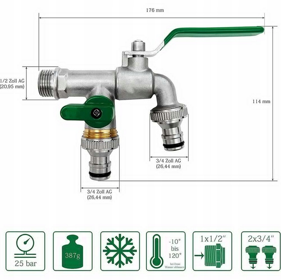 Приобретая «Двойной садовый кран 1/2 3/4 дюйма», вы можете быть уверены, что данный товар из каталога «Краны» вы получите в срок 5-7 дней после оплаты. Товар будет доставлен из Европы, проверен на целостность, иметь европейское качество.