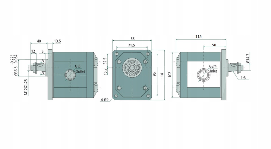 Если информация не предоставлена, мы отправим насос объемом 26см3/26см3 с внутренней резьбой. При 1500 об/мин. каждая секция имеет производительность 40 л/мин. эффективность.