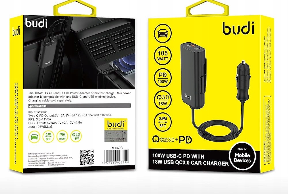 Budi Car Charger поддерживает быстрой зарядку PD 100 W и QC 3.0 , поэтому вам не нужно ждать дольше времени, пока ваше оборудование не будет готово для дальнейшей работы
