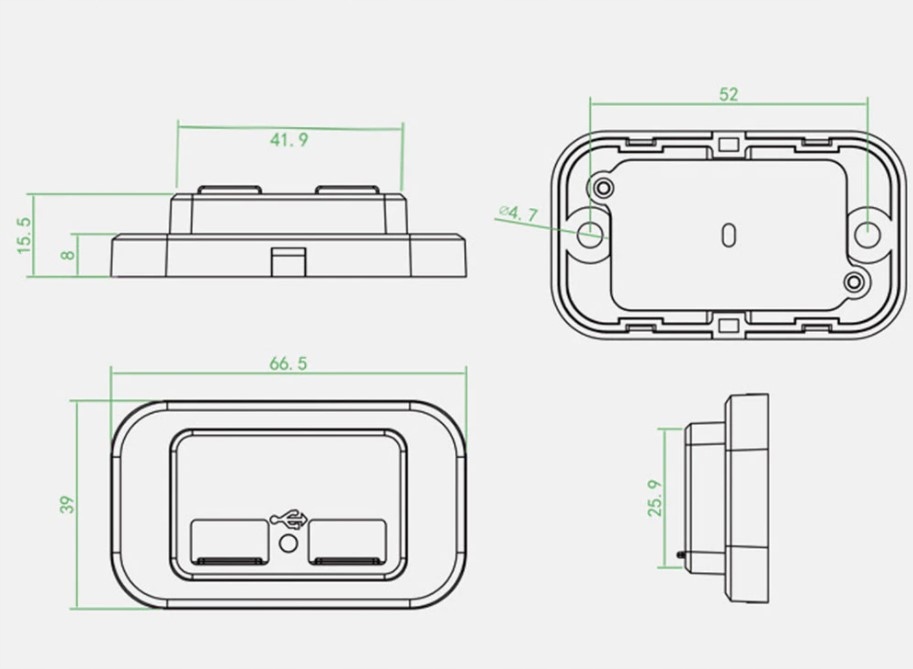 1. Двойные USB -выходные порты, быстрая зарядка 3.1a/4.8a. Встроенный -в синей светодиодной лампе, легко найти ночью. Установка с двумя винтами, легко и быстро. Сделано из огневого материала ABS, долговечный и предотвращение падения.