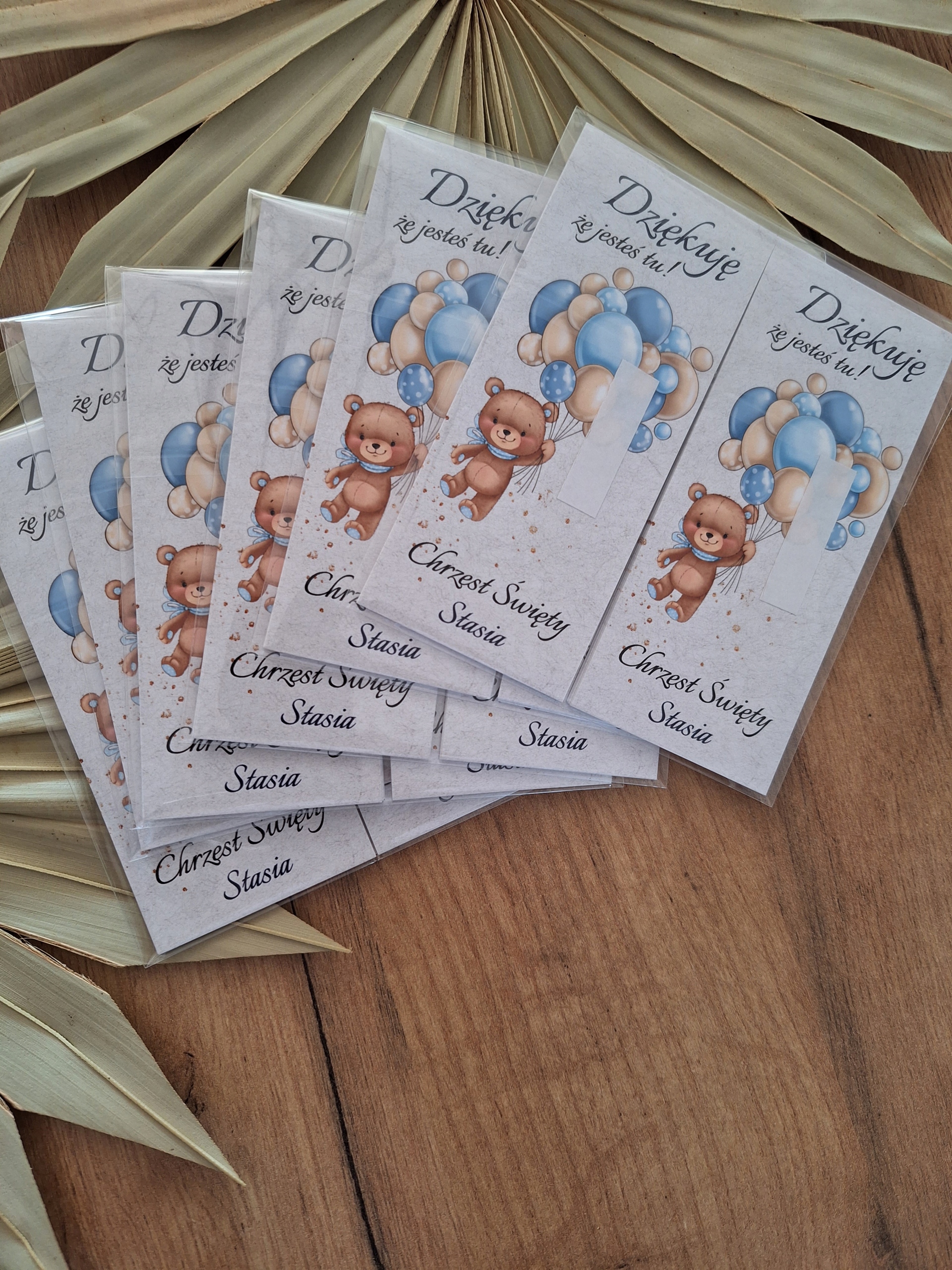Подяка MERCI гостям за хрещення ведмедик 12шт