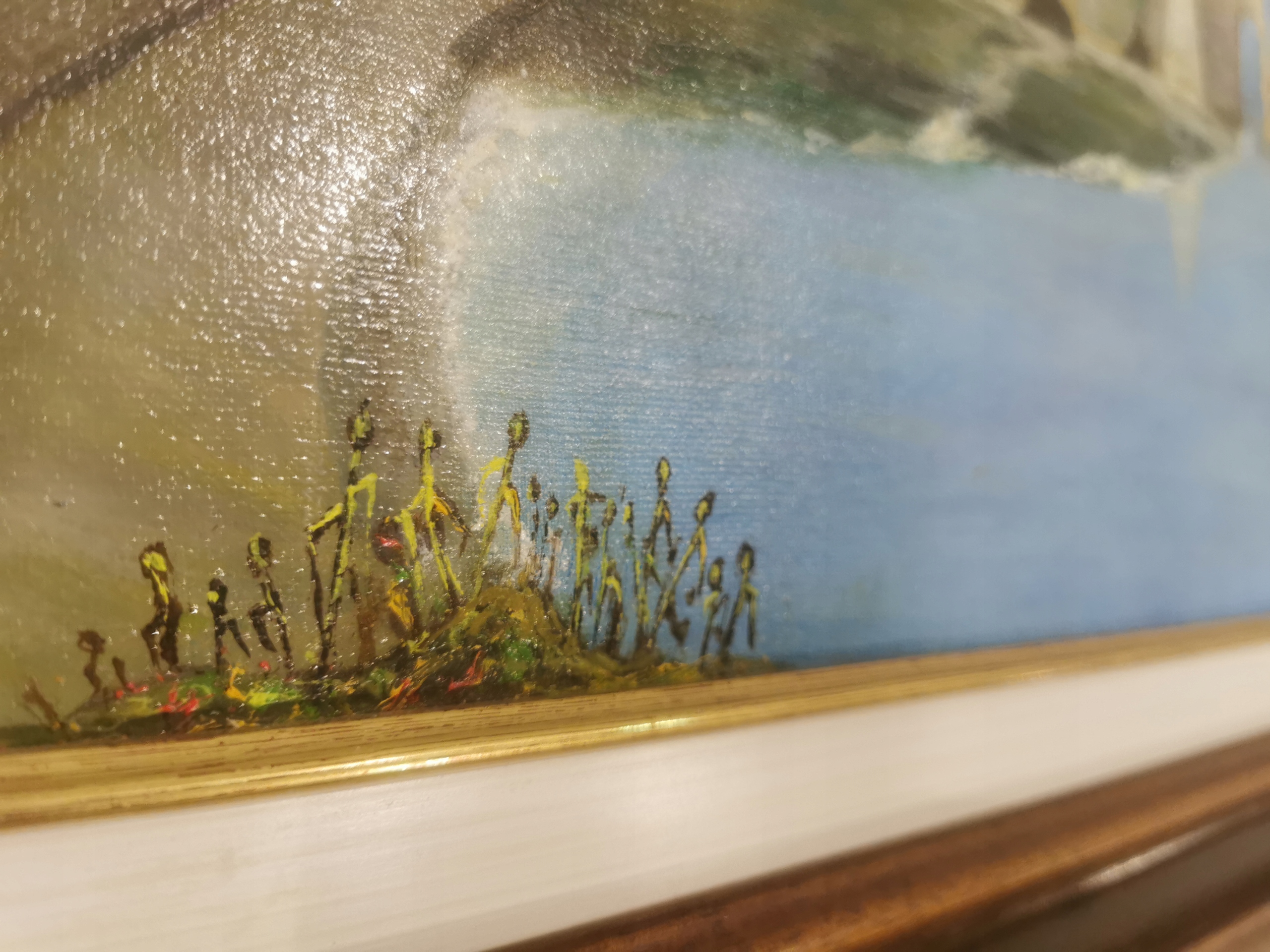 Пейзаж выполнен на холсте масляными красками с видимой и тактильной фактурой.