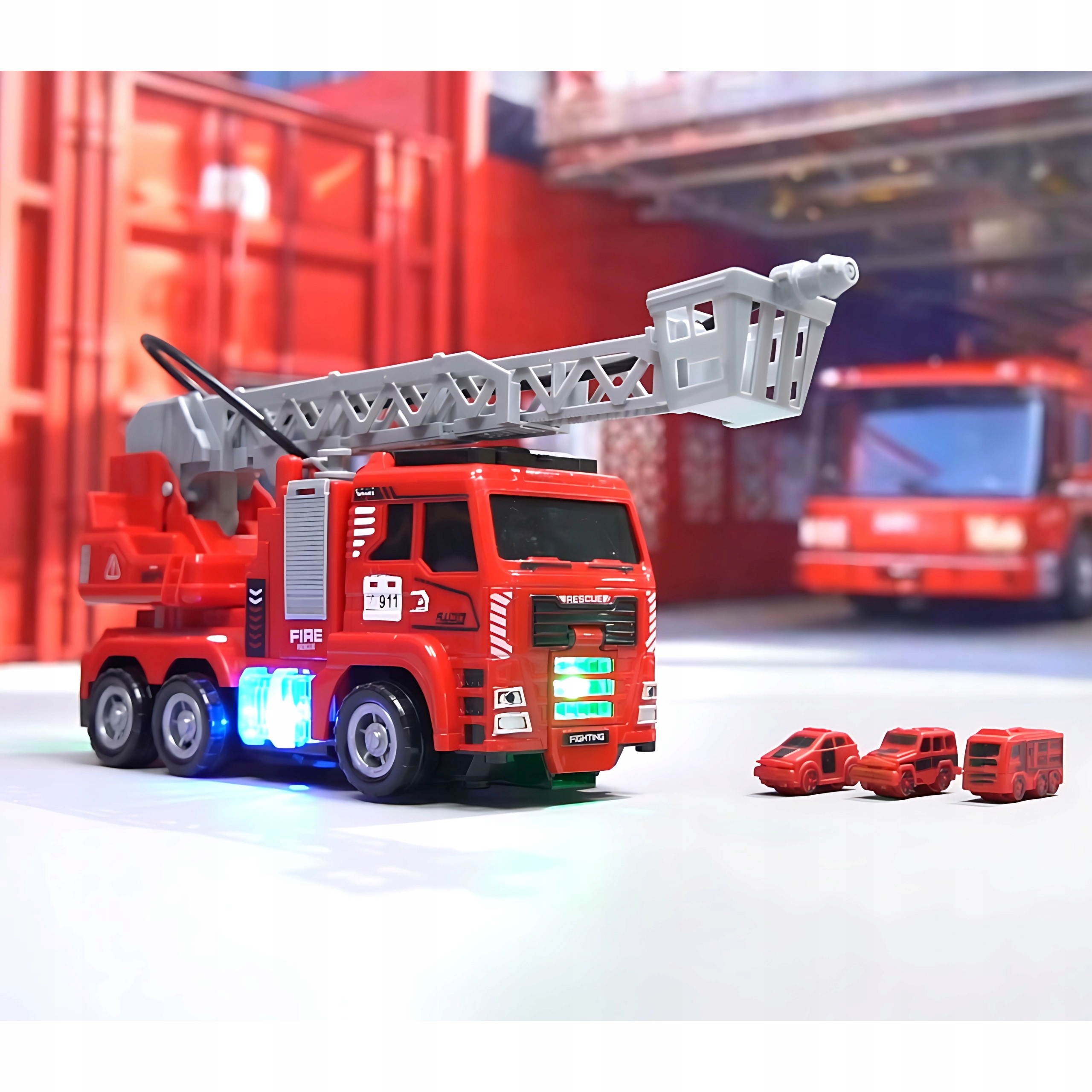 Самостоятельная пожарная машина -отличная игрушка, которая позволит каждому маленькому любителю спасательных транспортных средств чувствовать себя настоящим героем. Игрушка была разработана с вниманием к наименьшим деталям, которые верно воспроизводят настоящую пожарную машину. Модель оснащена выступающей лестницей и водяной курткой. После включения автомобиль начинает ездить по полу, размахивая лестницей с водной пушкой в сторону, иногда запуская мини -пожарные бригады в передней части автомобиля