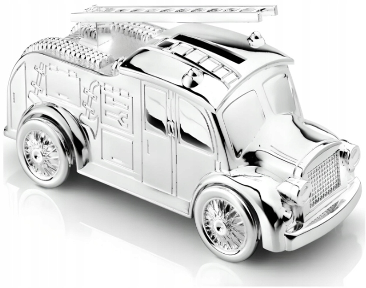 Это элегантный и функциональный подарок на крещение или годовалик. старый. Изготовлен из высококачественных материалов, часто покрытых серебром или хромом, он восхищает точностью исполнения и стильным внешним видом. Копилка имеет привлекательную форму пожарной машины с реалистичными деталями, что делает ее интересной для детей и элегантной для взрослых.