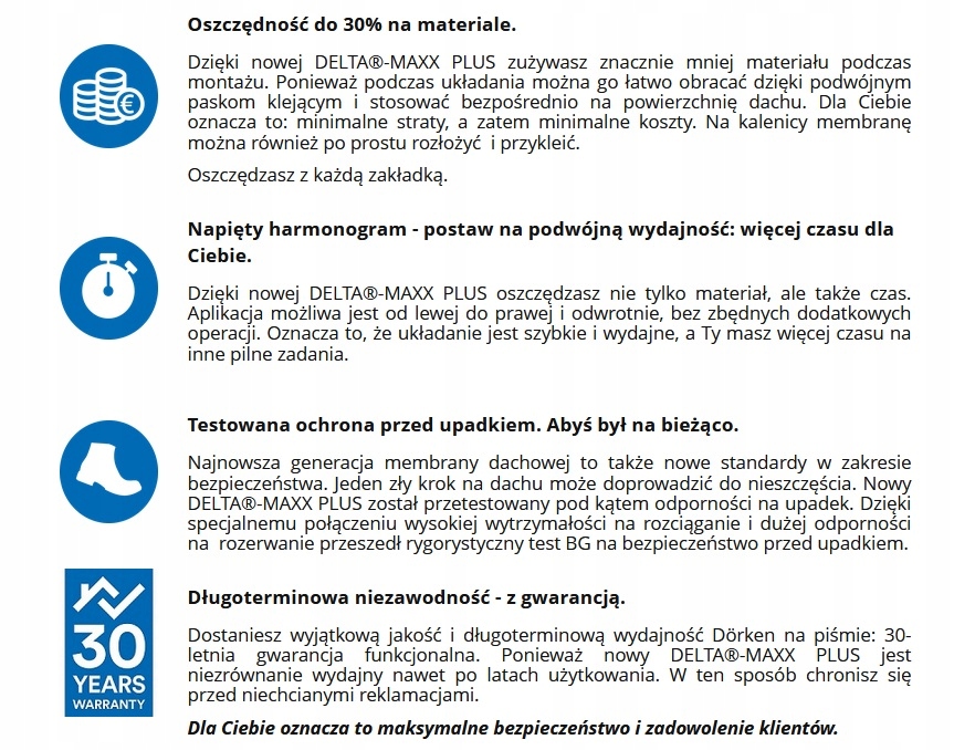 Новое поколение кровельных мембран с 30-летней гарантией – в продукции семейства DELTA-XX PLUS® _ _ _ предоставляется 30-летняя гарантия на функциональность.
