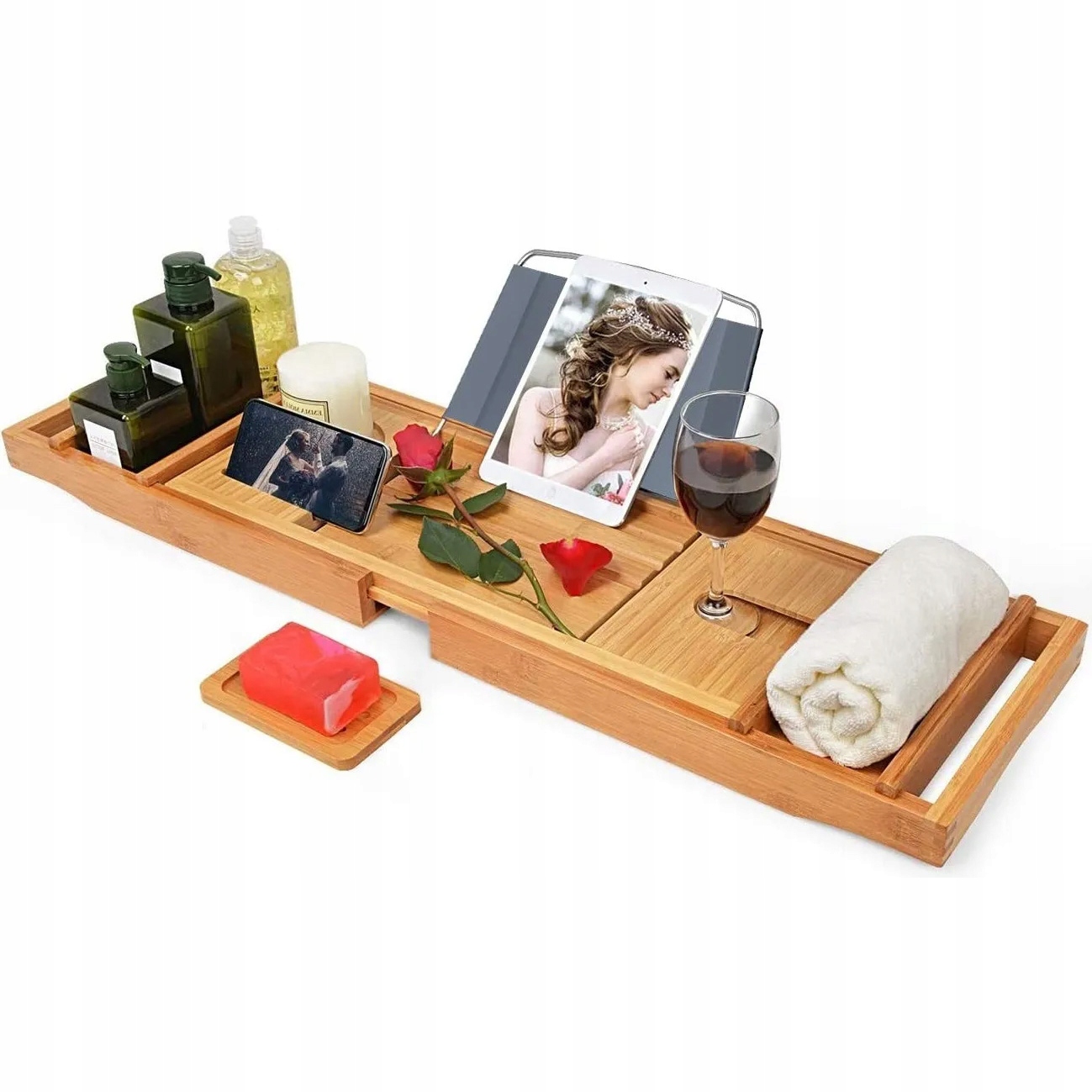 Практическая складная бамбуковая полка для ванны для хранения купальных принадлежностей и многого другого. Изготовленная из натурального бамбука, она не только выглядит элегантно, но и чрезвычайно удобна в использовании благодаря исключительной устойчивости к влаге.