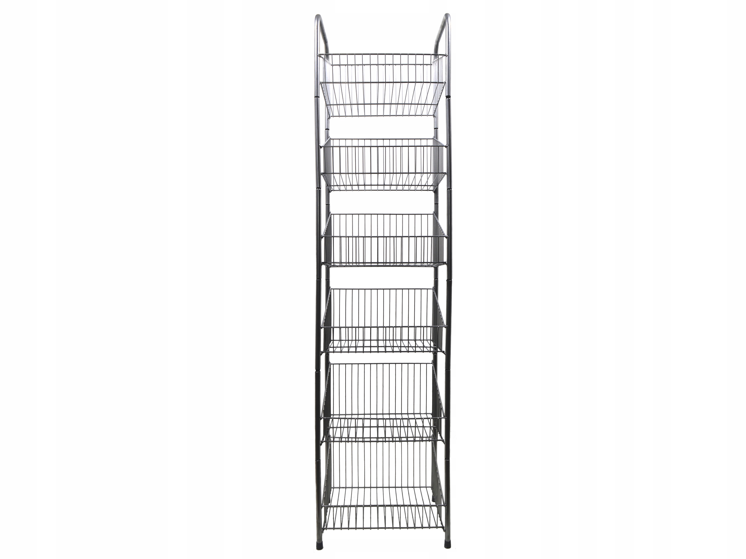 Проволочная регулируемая полка шириной 40 см состоит из шести отдельных корзин (полок), которые складываются одна за другой, что позволяет свободно перемещать и транспортировать их.