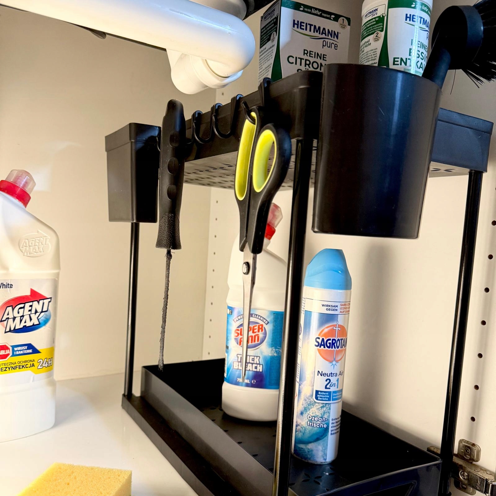 ✅ Идеально подходит для хранения чистящих средств, губок, тканей и других аксессуаров для кухни и ванной комнаты