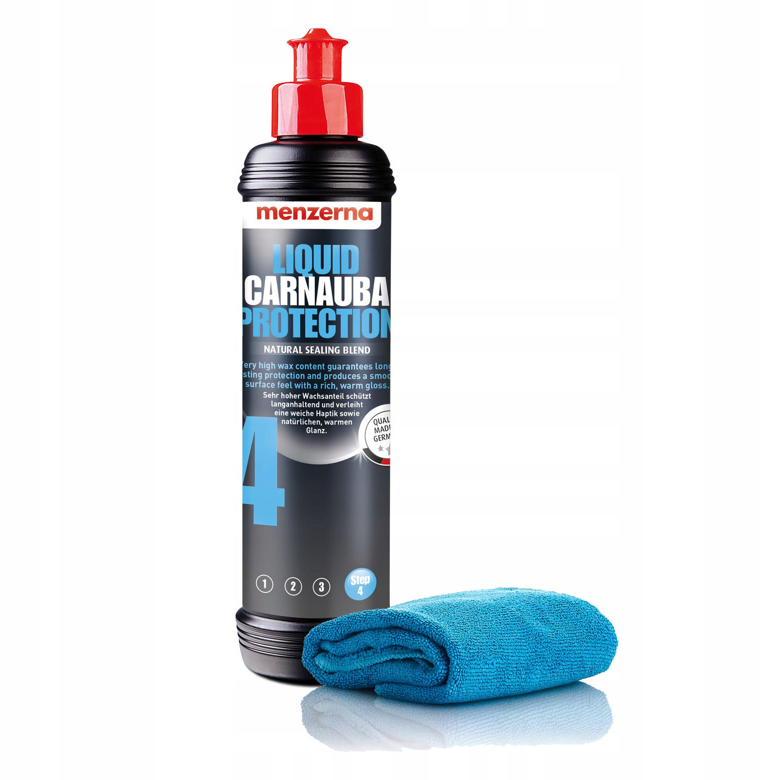 Menzerna Liquid Carnauba Защита. Идеально подходит для всех типов автомобильных лаков, воск гарантирует эффект «влажного взгляда», антистатический и удовольствие от прикосновения. Благодаря правильной подготовке поверхности лака (полировка, обезжиривание или глину), воск развивает полноту своих защитных свойств.