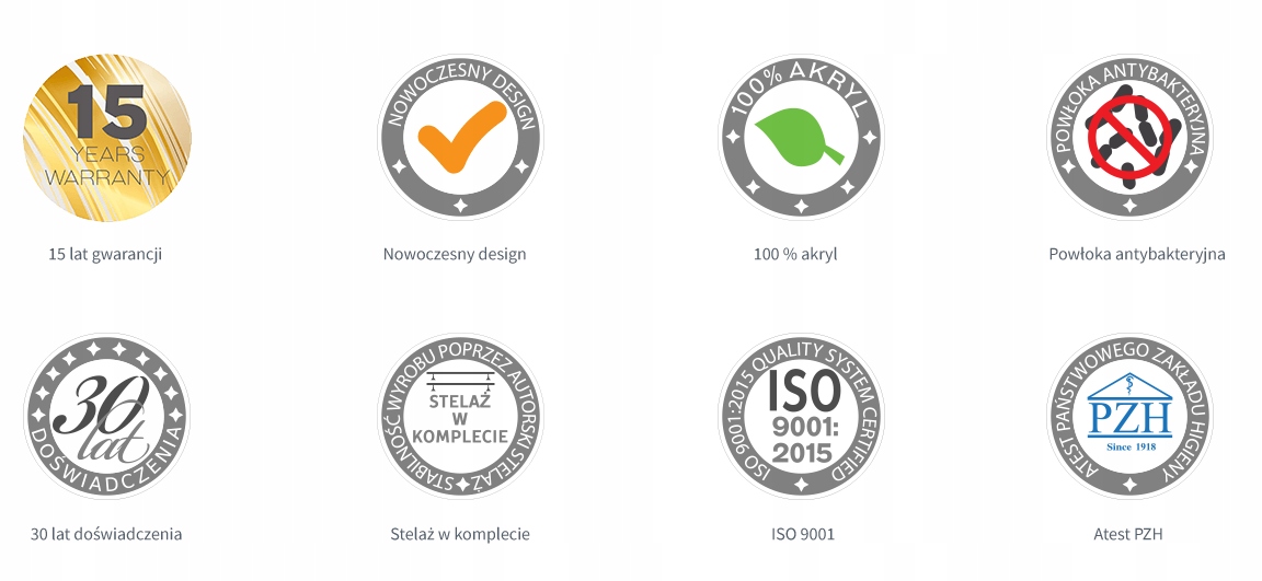 Мы знаем качество нашей продукции, что подтверждается 15-летним гарантийным сроком на отдельностоящие ванны! Высочайшее качество производимых нами ванн, душевых поддонов и раковин – приоритет нашего бренда.