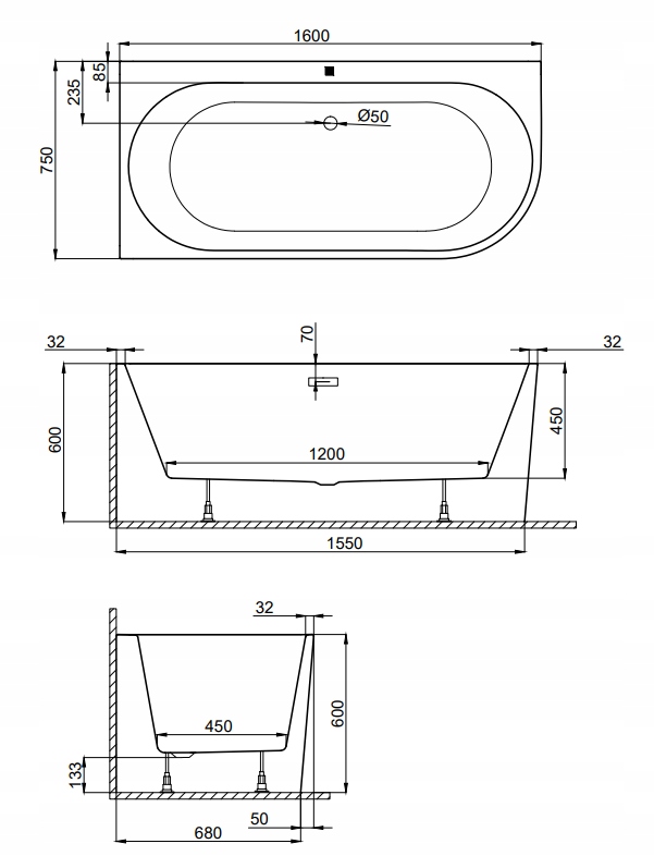 ПОЛЬСКАЯ СВОБОДНОСТОЯЩАЯ УГЛОВАЯ ВАННА 160x75 см