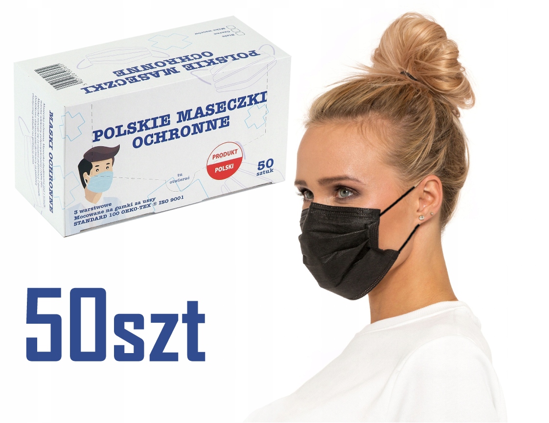 ПОЛЬСКИЕ ЧЕРНЫЕ ОДНОРАЗОВЫЕ МАСКИ, СЕРТИФИКАТ 50