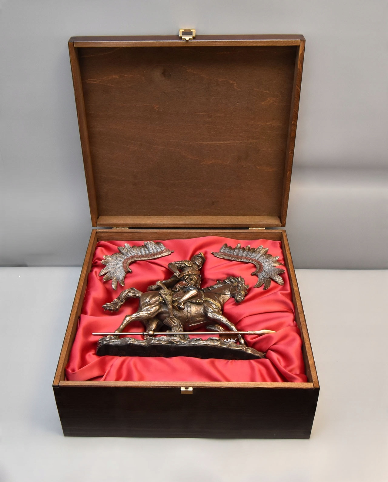 Красивая, реалистичная скульптура, изображающая польского гусара — легендарного воина верхом на коне.