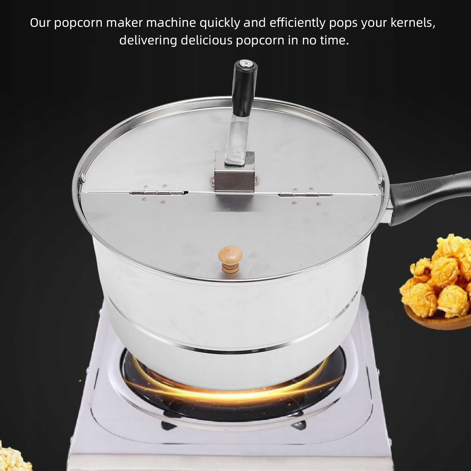 1. Легко в использовании: наслаждайтесь фильмом попкорна всего за несколько минут. Поверните ручку, чтобы обеспечить попкорн. Попкорн поппер скользит как газ, так и электрическое отопление. Идентификация для семейных встреч и вечеров кино. Вы можете добавить свою любимую поп -кукурузную соль и специи, чтобы получить самый ароматический опыт.