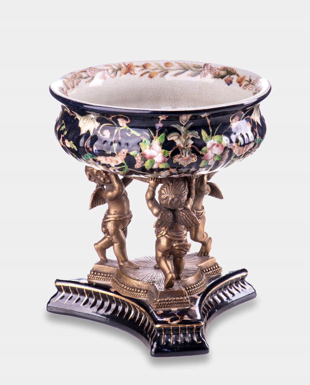 Фарфоровая декоративная миска с бронзовыми ангелами