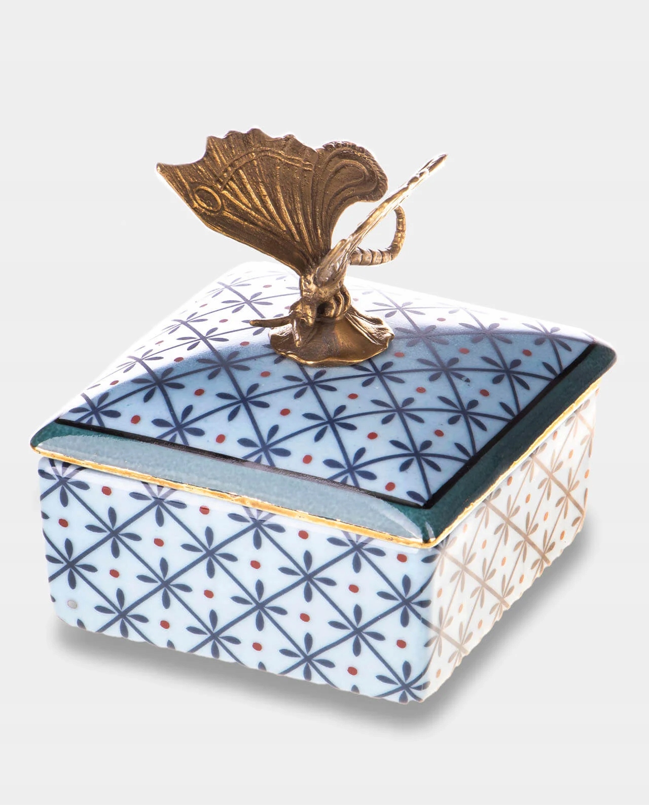 Откройте для себя элегантность и тонкость фарфоровой коробки с мотивом стрекозы, который сочетает в себе деликатность фарфора с увлекательным рисунком природы. Эта уникальная шкатулка, идеально подходящая для ювелирных изделий или небольших сувениров, является отличным декоративным акцентом в любом интерьере. Украшенная подробным мотивом стрекозы, символизируя трансформацию и легкость бытия, она добавляет немного магии и загадки в окружающую среду. Идеально как подарок или уникальный декоративный элемент, он будет подчеркнуть индивидуальный стиль каждой комнаты.