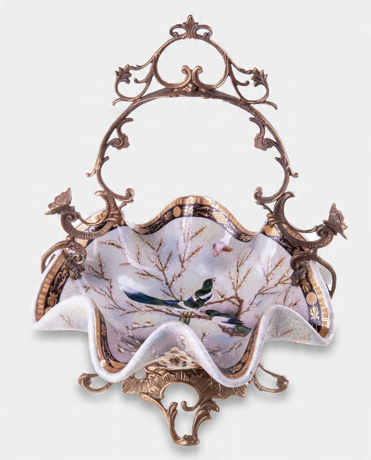 Порцеляновий блюдо у формі кошика з бронзовою основою та ручкою