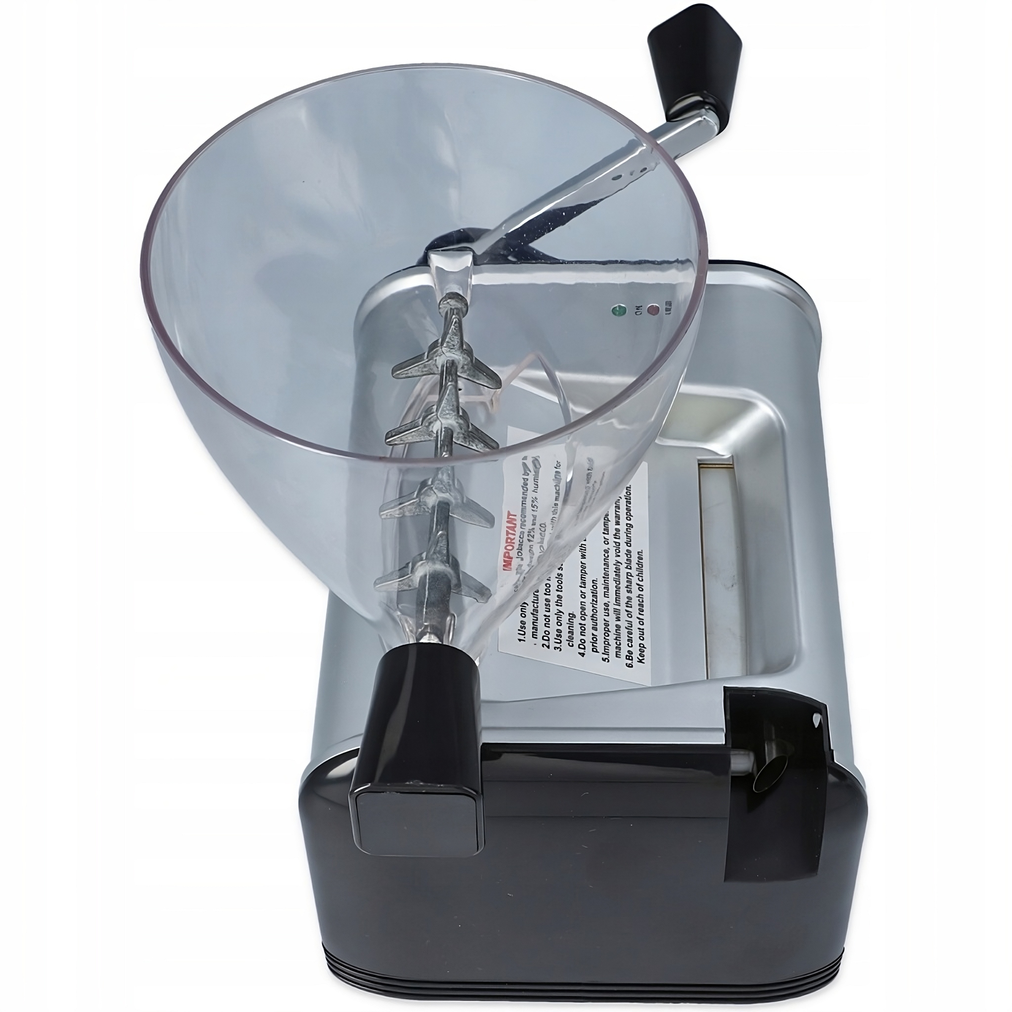 Наш табачный наполнитель спроектирован так, чтобы быть простым и приятным в использовании, и в то же время позволяет быстро работать благодаря поршневому механизму. Светодиодные диоды сигнализируют о готовности устройства к работе и о наличии табачных заторов, которые легко устранить с помощью входящих в комплект аксессуаров.