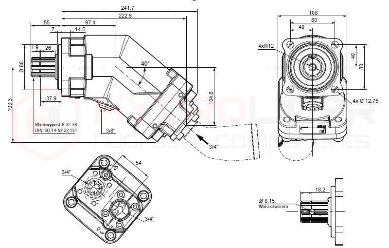 7-поршневая конструкция, наклон оси поршня относительно оси вала 40°. Компактная и компактная конструкция, передний подшипник также центрирует насос. Крепление крепления Фланец ISO крепится с помощью 4 винтов с шагом 80x80 мм; Центральный замок 80 мм, шлицевой вал 8-32-36, задние масляные каналы, всасывающее отверстие под 45° в комплекте.