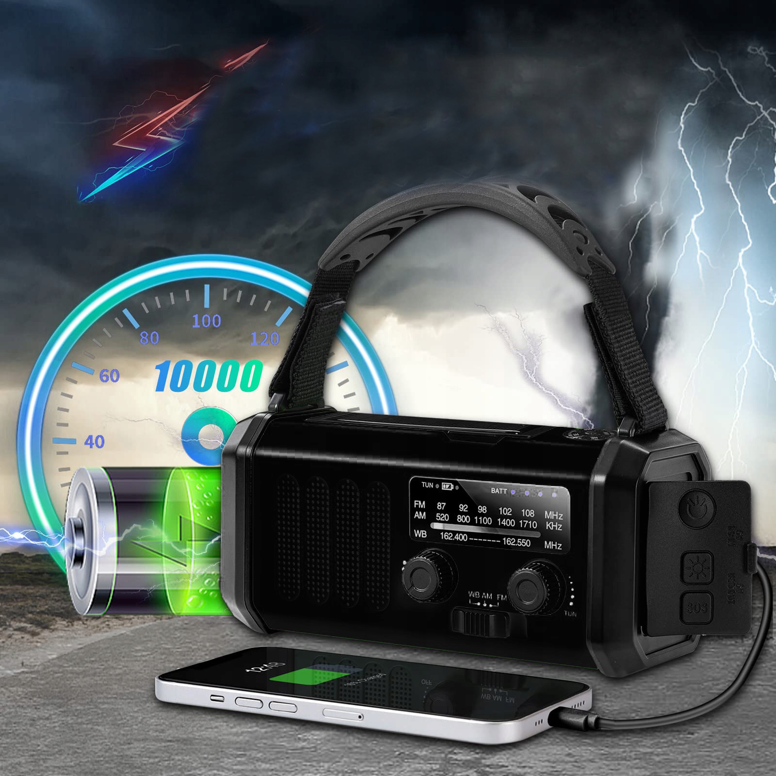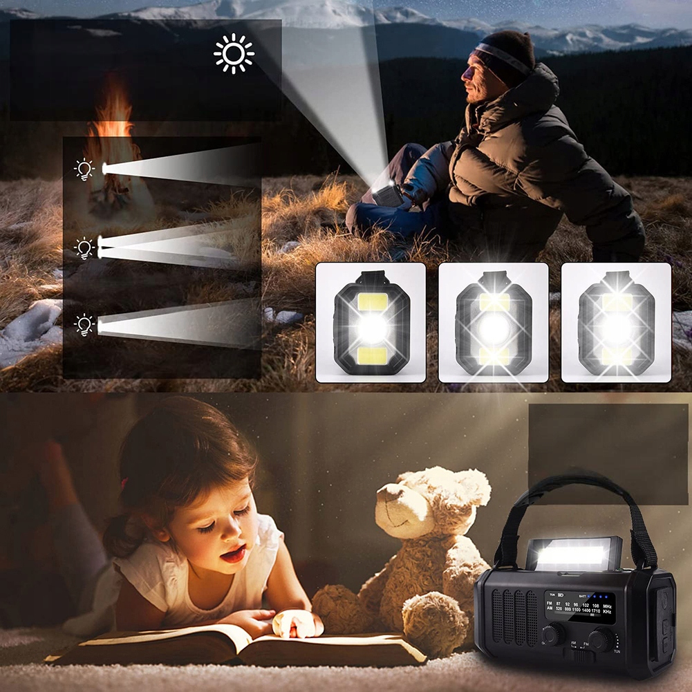 【Самое сильное спасательное радио】 Независимо от того, лагерь, рыба, путешествие, путешествовать, плавать на лодке или вы в шторме, вы наблюдаете за торнадо, отслеживаете ураганы или мороженое, наше радио - надежное оборудование, которое обеспечит вам готовность действовать. Если в вашем районе существует риск бедствий, таких как цунами, землетрясения, перебои в электроэнергии и проливные дожди, пришло время подготовиться. Идеальный подарок для друга или члена семьи.