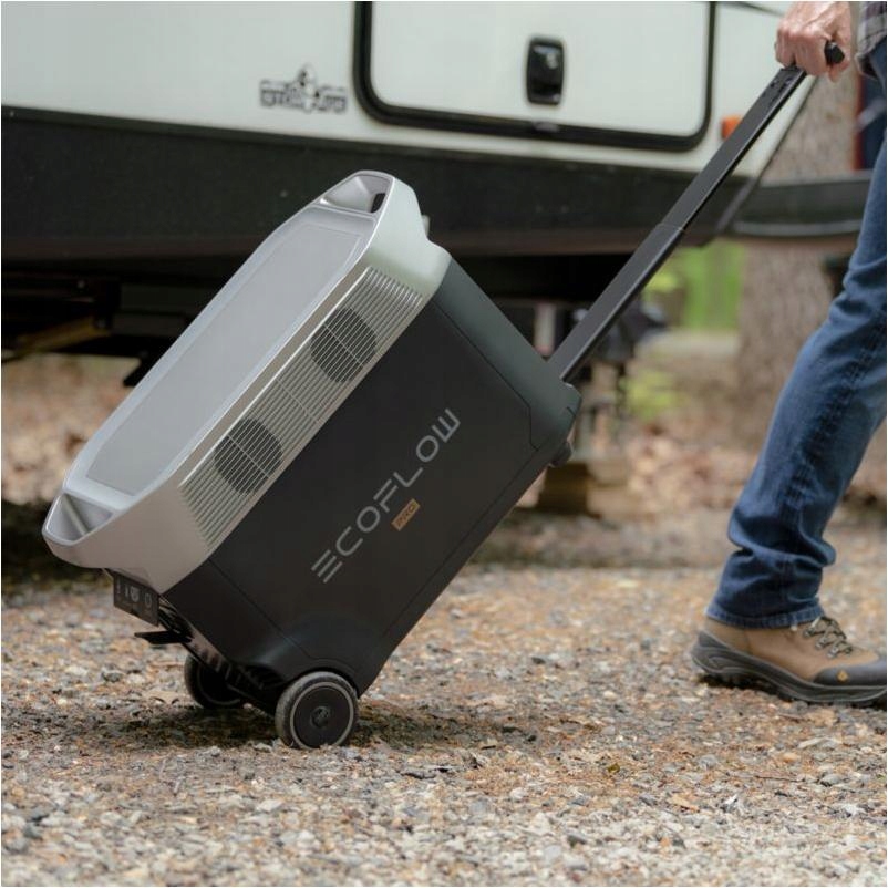 Delta Pro Station - отличный компаньон во время путешествия по кемперу. Благодаря практическим колесам и ручкам, вы можете взять его с собой везде. Он также был оснащен электрическим гнездом и портом Anderson 30a. Вы можете легко кормить его солнечной энергией из солнечных панелей или из сети.