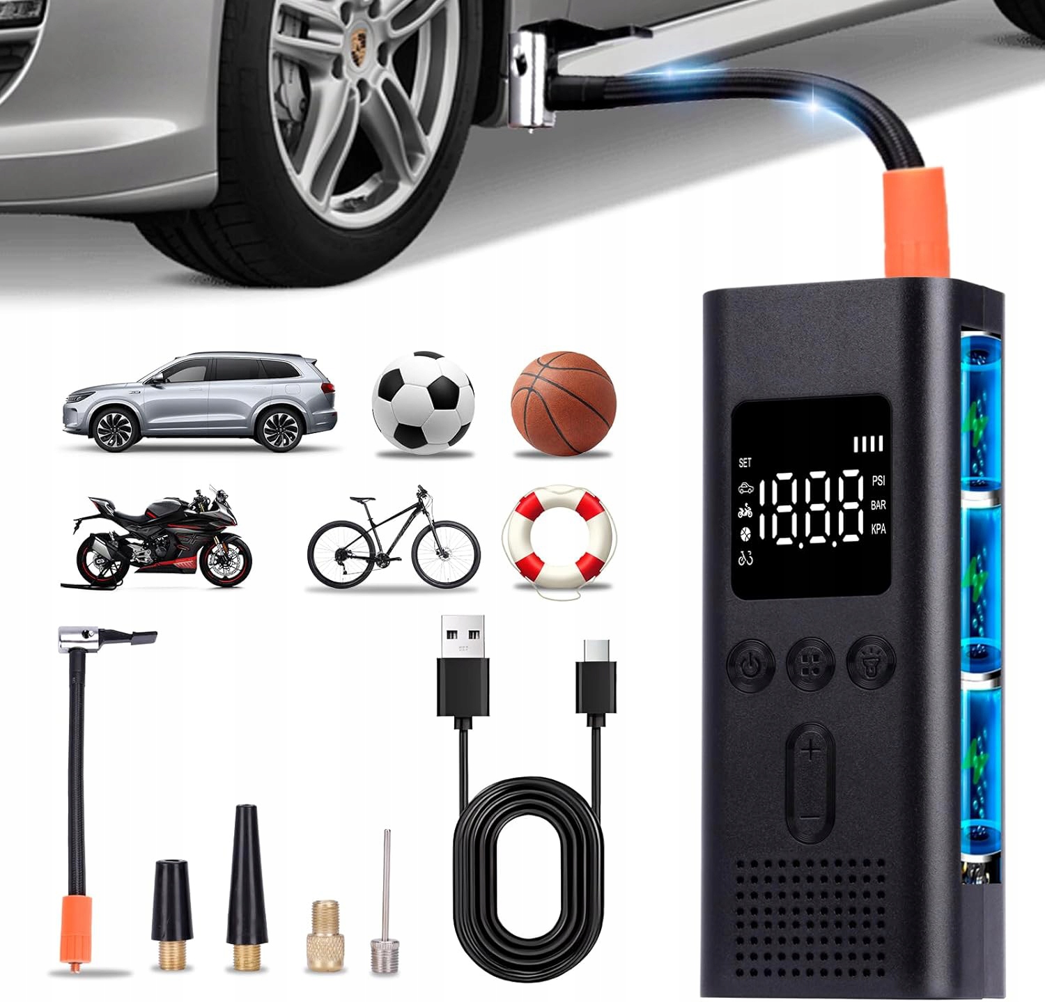 Портативный батарейный компрессор мотоциклетный насос велосипед 4000 мАч 7,4 В ЖК -дисплей