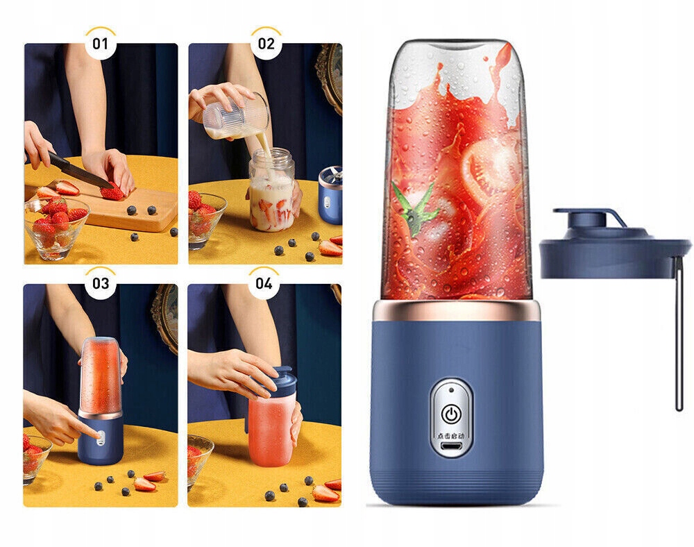 - USB-соковыжималка имеет встроенный аккумулятор 1300 мАч.