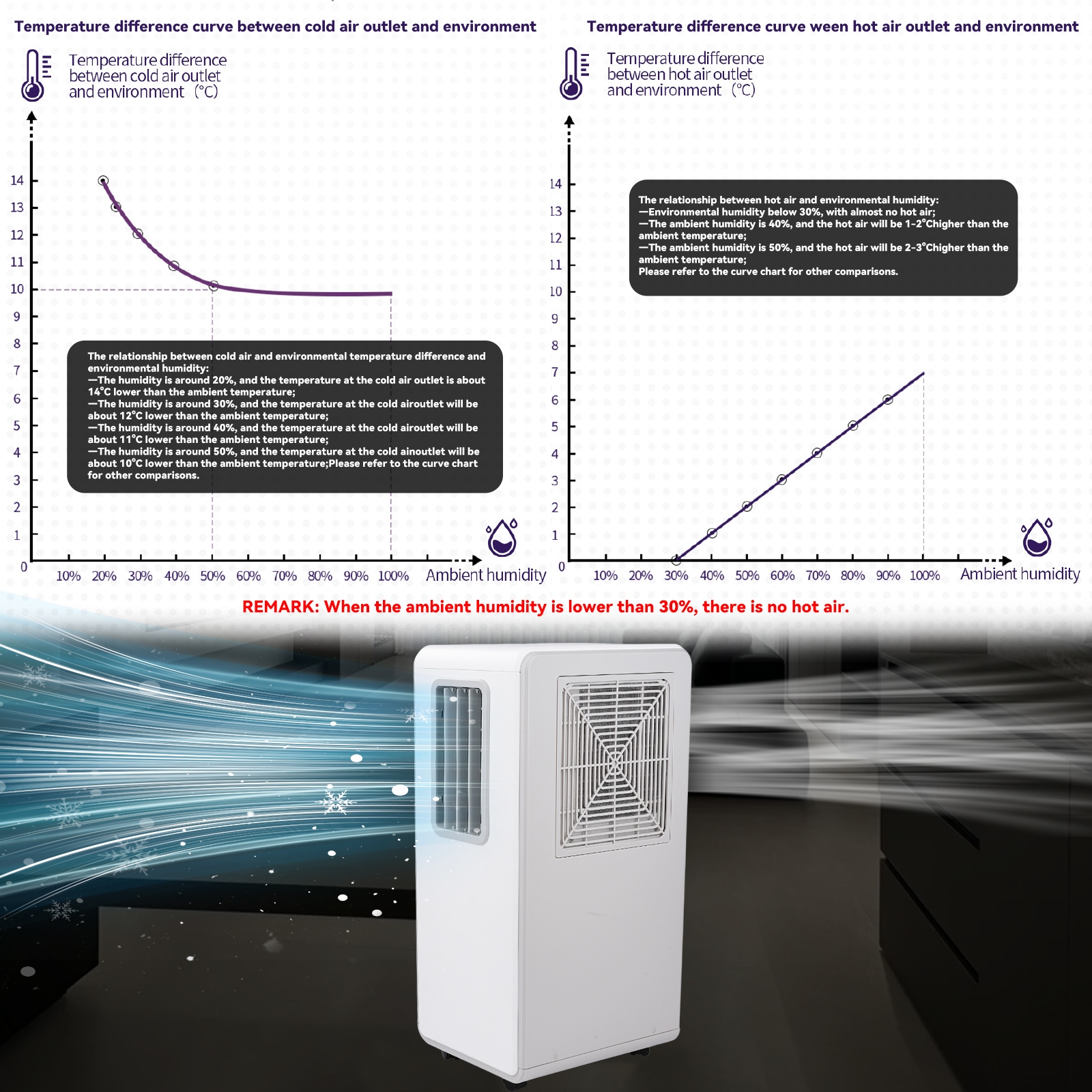 1. Он не требует установки, просто подключайте и добавляйте воду, вам не нужно устанавливать выпускные каналы и вниз, такие как аналогичные кондиционеры мобильных воздушных средств;
