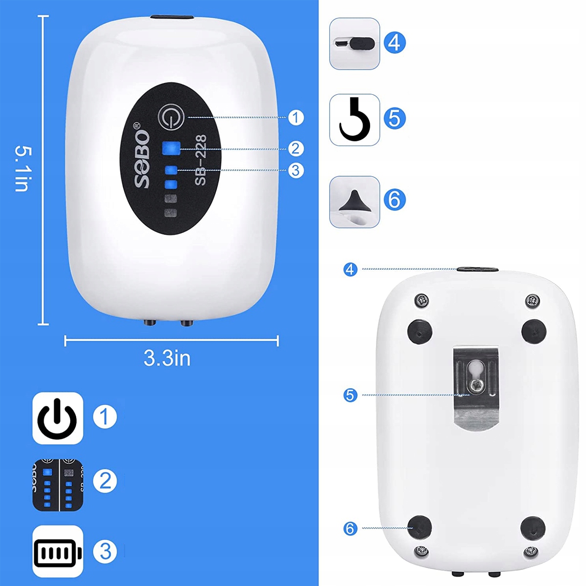 - зарядка USB, поддерживает мобильный источник питания и показывает уровень заряда. Батареи 70 часов, еще дольше при использовании мобильного источника питания. Многоуровневое, устойчивое к ударам и глушину, низкому шуму, с крючком можно повесить на стену аквариума
