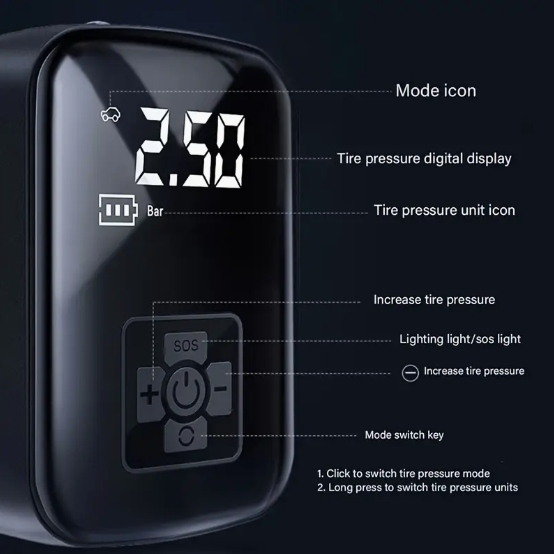 Большая емкость батареи (3600 мАч) обеспечивает достаточную работу, чтобы надуть колесо без необходимости частой зарядки. Быстрая зарядка позволяет полностью заряжать устройство в течение 3-4 часов.