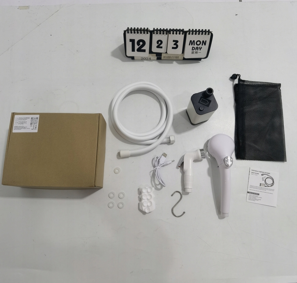 - Оборудование, необходимое для путешествия, - это наше душ для кемпинга, который был оснащен дополнительным душем для давления, которое может быть установлено для постоянного потока или ручного обслуживания.