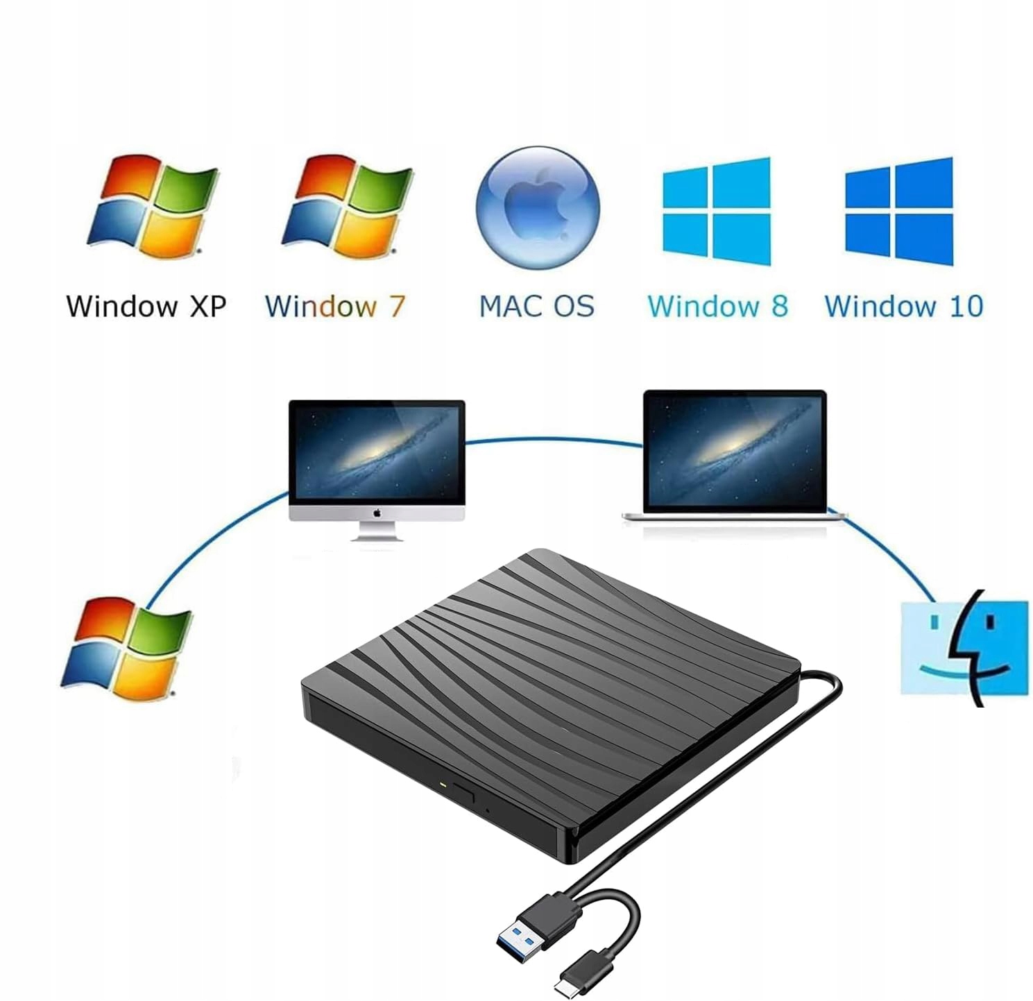Портативный внешний DVD -диск DVD, для Windows 11/10/8/7/XP/Linux/MacOS