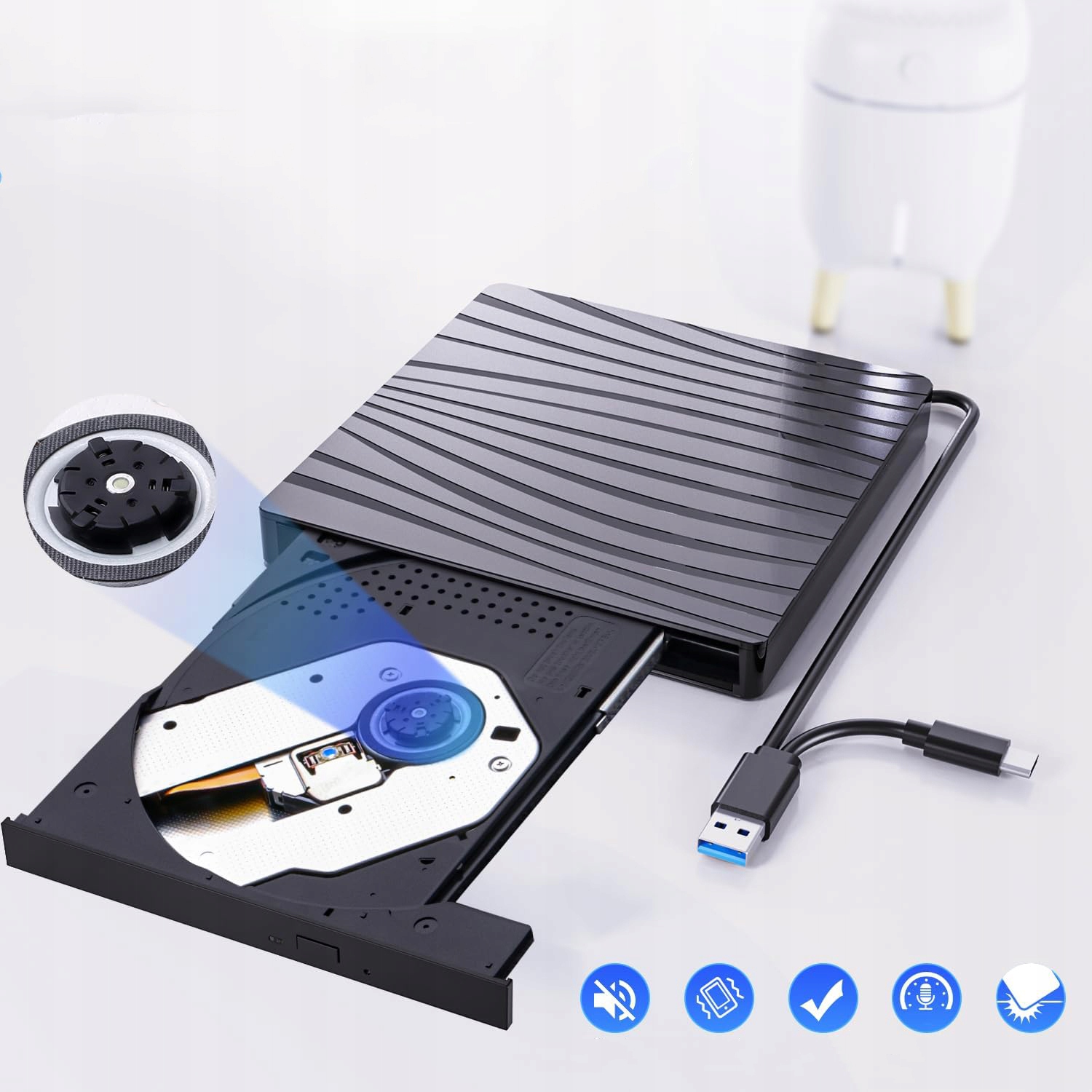 💎💎 Встроенный кабель: Этот внешний диск с модным корпусом с полосками зебры выглядит стильно и раскопано. Кабель передачи данных скрыт в задней части привода CD/DVD. Это стройное, легкое и устойчивое к шоку, поэтому его можно легко транспортировать и хранить.