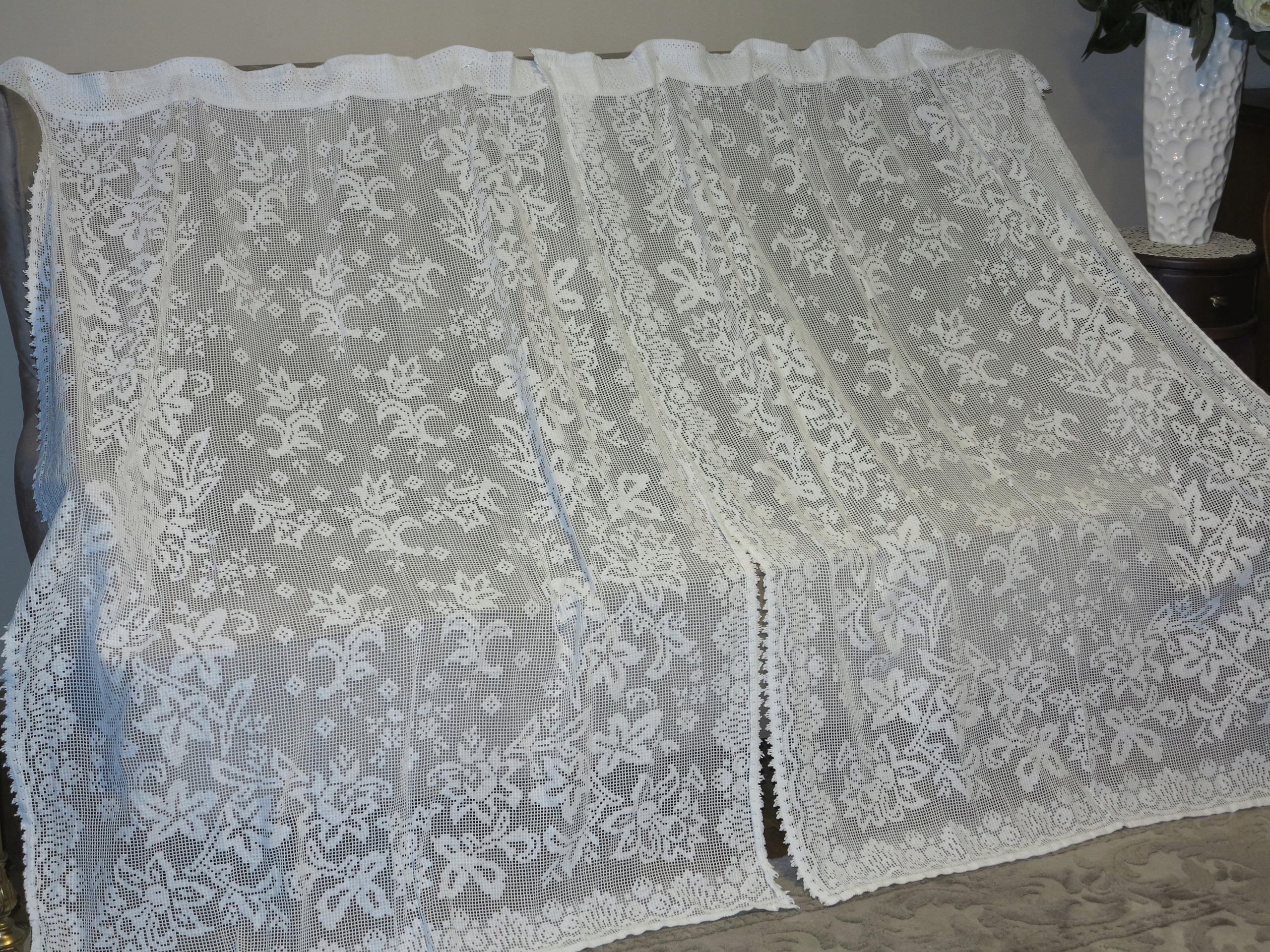 СДЕЛАНО В ПОРТУГАЛИИ – ПРЕКРАСНАЯ КРУЖЕВНАЯ ШТОРА, ШТОРА СО СТИЛЬНЫМ, ОЧЕНЬ ДЕКОРАТИВНЫМ УЗОРОМ.
