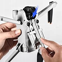 【Защита от потери аккумулятора】Если шасси Mini 3 Pro находится в разложенном состоянии, аккумулятор может оставаться в самолете без каких-либо происшествий. Аккумулятор можно заменить, не снимая ножек. Просто оставьте посадочные опоры дрона сложенными.