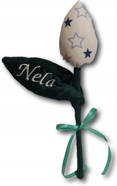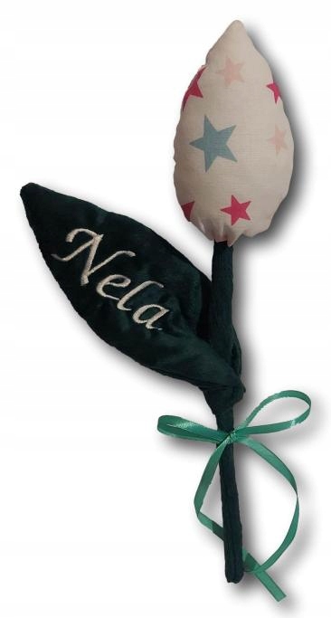Красочный тюльпан, сшитый с вышитым именем, которое никогда не завянет.