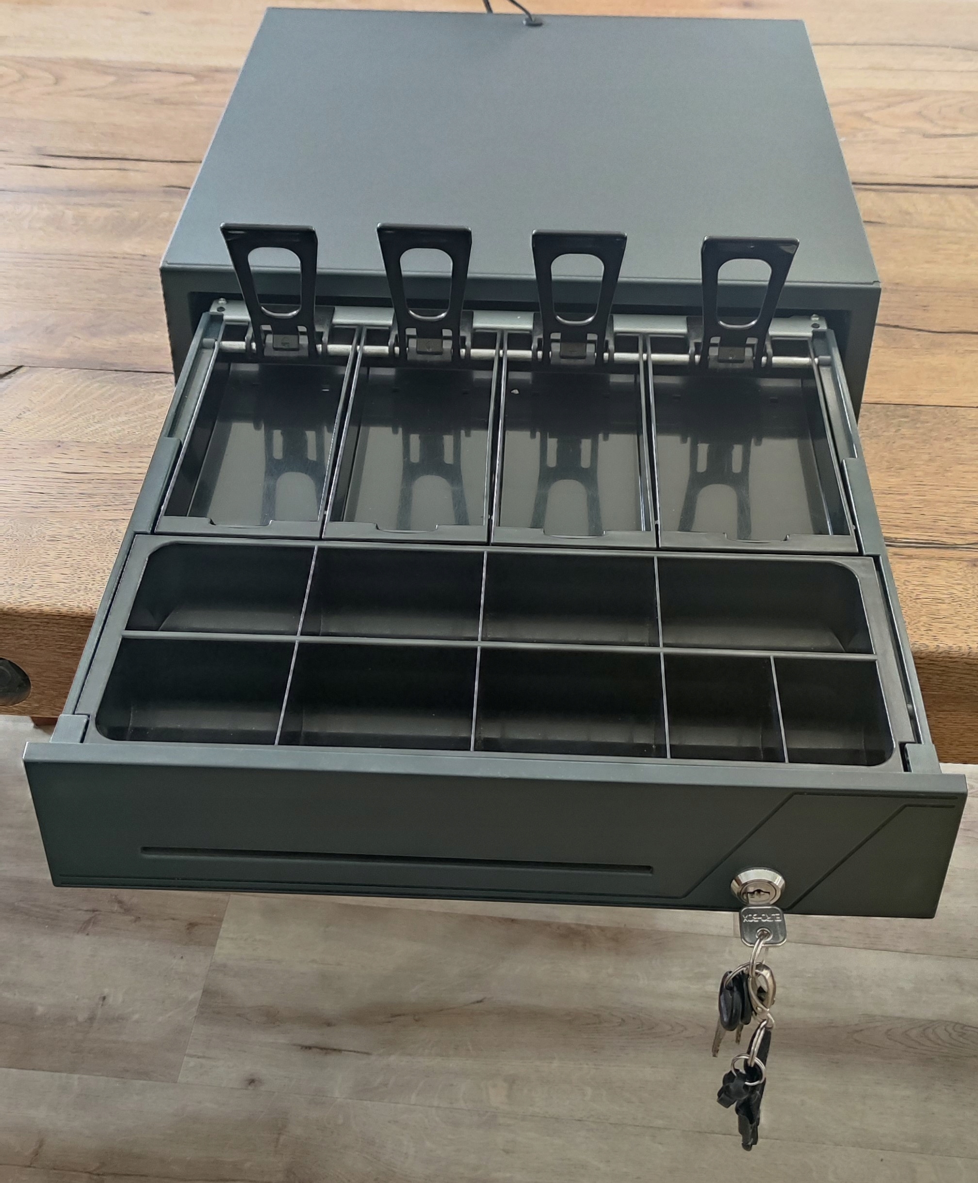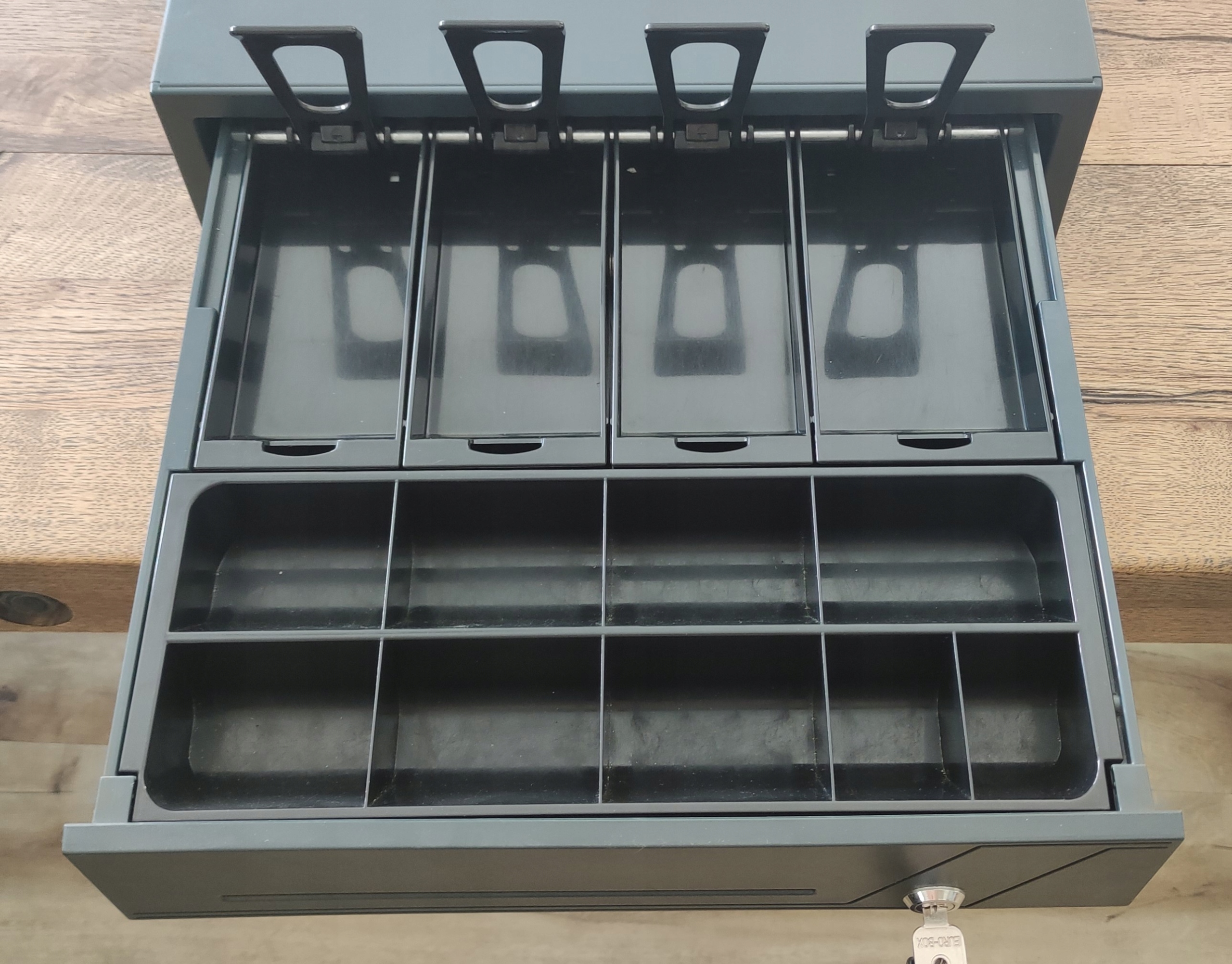 Ящик Posnet SKL Cashier был разработан для наиболее требовательных пользователей и является ответом на растущий рыночный спрос на устройство, характеризующееся высокой долговечностью и прочности. Руководство ящика. Они обеспечивают долгие и надежные действия, и коляска благодаря им легко и тихо движется. Ящик оснащен 8 отсеками для банкнот, адаптируется с размерами для полировки Zlotys и Euros, а также съемный 9-сетептический контейнер для распыления. Управляя импульсом в диапазоне от 5 - 12 В, 0,7 А с минимальной продолжительностью 300 мс, ящик работает с большинством устройств, доступных на рынке.*